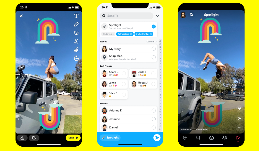 Snap highlighted the growth of its TikTok-like ‘Spotlight’, which, in addition to being a feed of short video clips, also provides cash incentives – up to $1 million per day – for the best, most engaging Spotlight shorts.